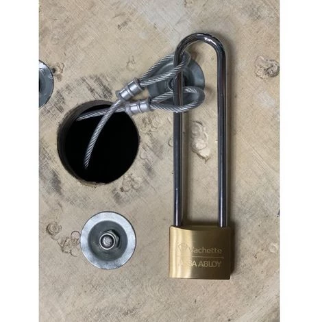 Le cadenas est composé d’un corps en laiton de 40 mm et d’une anse haute en acier cémenté de hauteur 120 mm. L’anse a été conçue pour résister à la coupe et au sciage.