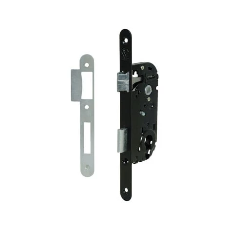 Sûreté pour cylindre, pêne dormant 1/2 tour, axe à 40 mm, petit coffre 135 mm, têtière vernie, bouts ronds.