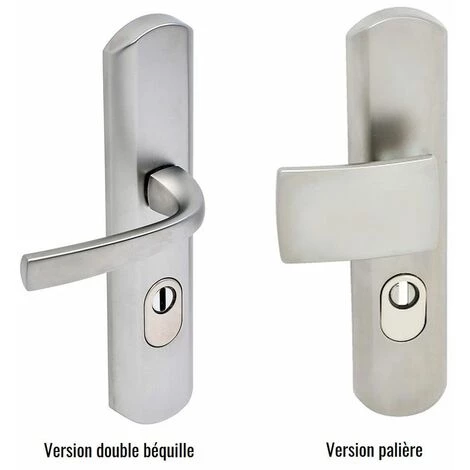 Poignée blindée Vachette MUZE entraxe 195 mm Poignée Vachette Muze : Sécurité et design Vachette présente sa dernière gamme de poignées anti effraction au look design et moderne. De belles finitions et une coupe haut de gamme disponible en 3 coloris : Chrome velours qui se rapproche du gris aluminium, Platine avec une teinte légèrement dorée et Diamant noir avec une touche brillante. Il s’agit ici de la version Platine. Cette poignée blindée vous assure une très bonne protection contre les cambrioleurs. Les vis ne sont pas apparentes. Vous fixez depuis l’intérieur du logement et serrez fermement l’ensemble pour un effet sandwich qui augmente la sécurité. Votre cylindre de serrure est bien protégé derrière la pastille anti perçage. Cette dernière tourne dans le vide si une personne mal intentionnée tente d’anéantir votre serrure. Protection haute sécurité avec béquille en zamak, piliers taraudés intégrés anti-perçage et béquille et plaque solidarisées. Ma porte est-elle compatible avec cette poignée blindée ? Attention, cette poignée blindée n’est pas universelle contrairement à la poignée de porte blindée Secumax Up. Avant de commander, vérifier bien toutes ces données : Votre porte doit faire 4 cm d’épaisseur pour la version standard. Un kit de rallonge avec des vis plus longue est nécessaire si votre porte fait entre 4,8 cm et 6,8 cm. (Kit à retrouver dans les options) Poignée de porte blindée entraxe 195 : Uniquement compatible sur entraxe standard 195 mm que l’on retrouve sur la majorité des portes. L’entraxe de fixation est l’écart entre la vis de fixation en haut et celle en bas de la poignée. Autre entraxe à contrôler, la distance entre la poignée et le cylindre qui est de 70 mm. Il s’agit ici aussi d’un standard retrouvé sur la grande majorité des portes. Le dépassement de la porte côté extérieur de votre cylindre de serrure doit être compris entre 10 et 15 mm. La plaque extérieure étant épaisse de 15mm, votre dépassement de cylindre ne doit absolument pas excéder cette mesure. Le protecteur de cylindre est auto-adaptable entre 10 et 15mm. Besoin de changer votre barillet ? Découvrez notre sélection des meilleurs barillets de sécurité. Poignée de porte palière ou à double béquille : Poignee blindee anti effraction disponible en 2 versions : Double béquille avec une poignée à l’intérieur et à l’extérieur. Il s’agit de la version la plus standard. Il existe aussi la version poignée de porte palière avec une poignée uniquement à l’intérieur du logement. L’extérieur est une poignée porte palière qui ne bouge pas. Il s’agit ici de la version palière. Avant de commander une version palière, assurez-vous que la gâche de votre serrure s’actionne automatiquement avec la rotation de la serrure. Sans poignée à l’extérieur, le simple fait de tourner la clé permet d’actionner la gâche et d’ouvrir la porte. Caractéristiques techniques Poignée blindée Vachette : Garantie 10 ans. Fabrication Française. Marque Vachette Assa Abloy. Couleur Platine. Version Palière. Poignée blindée Entraxe 195 mm. Avec protecteur de cylindre renforcé anti perçage. Vendu avec les vis de fixation M6. Carré de la poignée 7 mm (8 mm en option).