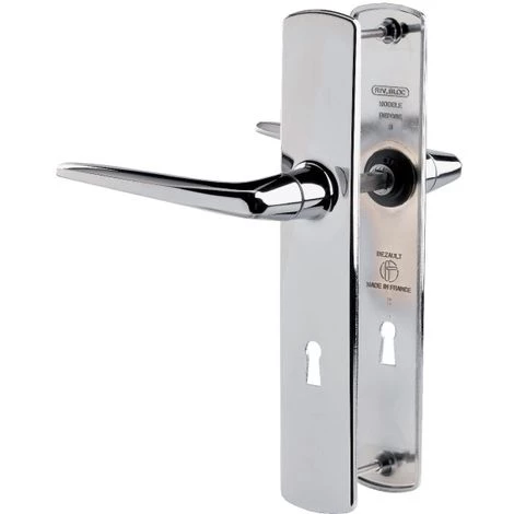 Poignées De Porte Budget Avec Plaque En Argent, Entraxe 165 Mm, Bec De Canne Vachette