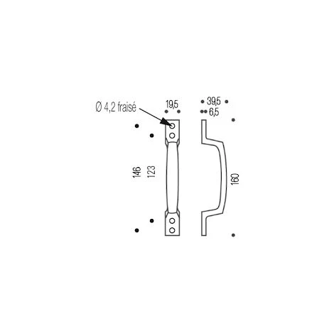 Réf.788 : modèle droit, finition aluminium poli, 4 trous de vis, longueur 160 ou 190 mm