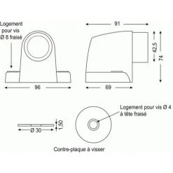 VACHETTE Butée Arrêt De Porte Lourde Avec Aimant En Zamak Laqué Gris Métallisé