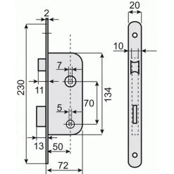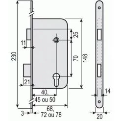 VACHETTE Serrure à Larder D 455 à Cylindre Européen Têtière Acier Axe à 50 Mm Main Gauche