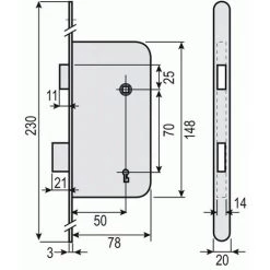 VACHETTE Serrure à Larder 4 Points – Axe 50 Mm Têtière 18 X 2150 Mm – Série 20515 – Droite