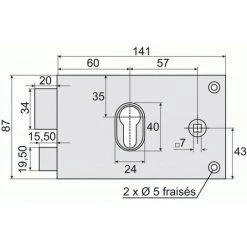 VACHETTE Serrure En Applique Horizontale – Pêne Dormant – A Cylindre Européen – 7414 Main Droite