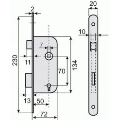 VACHETTE Serrure à Larder Pêne Dormant à Gorges Axe 40 Mm-Têtière Bouts Ronds Coloris Blanc -D 24