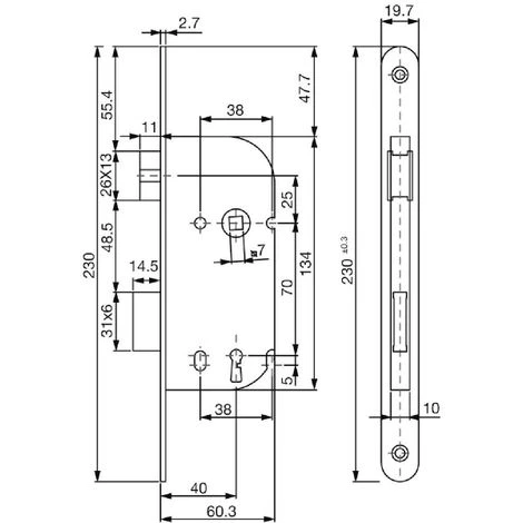 Caractéristiques : Type : Serrure – Sens de montage : Droite – Nombre de pièce : 1 – NF : 1 – Fonction : Clé L