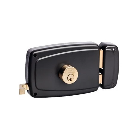 Serrure en applique mono-point pour intérieur ou extérieurAvec tirette Cor de chasse et cylindre côté intérieurCoffre en acier verni finition…