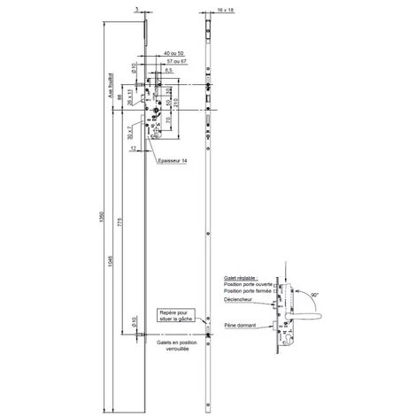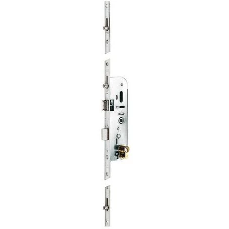 Serrure à 4 points de fermeture par 3 galets et 1 pêne dormant.