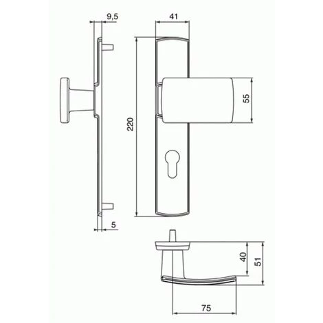 Plaque avec piliers taraudés intégrés et vis invisibles côté extérieur pour porte de 40 mm d’épaisseur.