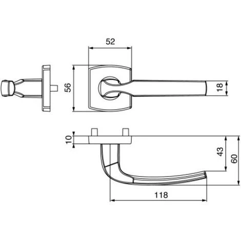 Pour porte d’épaisseur 40 mm. Rosace 52 x 52 x 10 mm. Sous rosace en polyamide pour fixation traversante avec vis M4 en entraxe 38 mm.