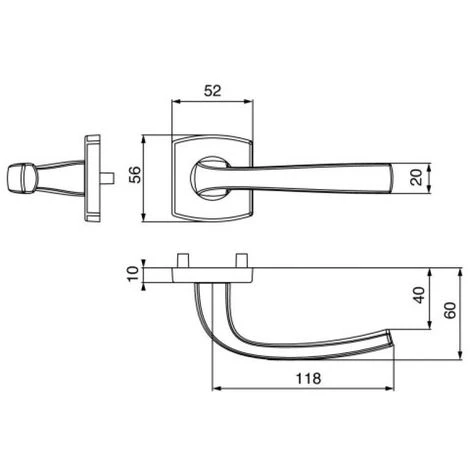 Pour porte d’épaisseur 40 mm. Rosace 52 x 52 x 10 mm. Sous rosace en polyamide pour fixation traversante avec vis M4 en entraxe 38 mm.