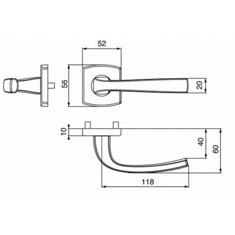 Pour porte d’épaisseur 40 mm. Rosace 52 x 52 x 10 mm. Sous rosace en polyamide pour fixation traversante avec vis M4 en entraxe 38 mm.