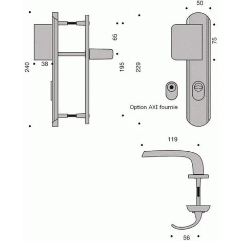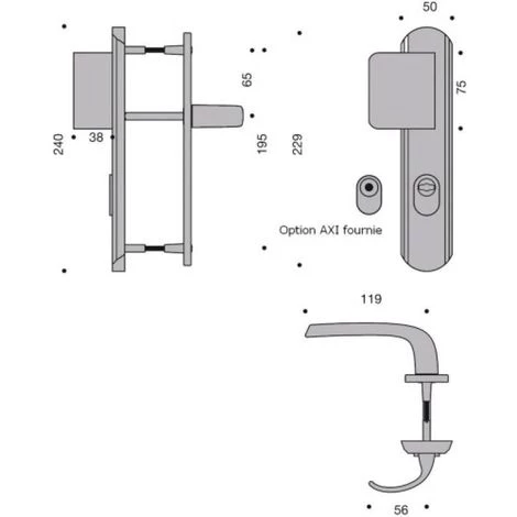 Prix VolumeEnsembles de sécuritéBéquilles palière de sécurité aluminium anodisé argent entraxe 195 mm type Sécumax One Ensemble de sécurité pour porte d’entrée. Entraxe 195 mm. Pour porte d’épaisseur 40 mm. Plaque extérieure massive de 240 x 50 x 12 mm. Plaque intérieure de 228 x 42 x 7 mm avec sou Fabrication Française 10 Ans Garantie