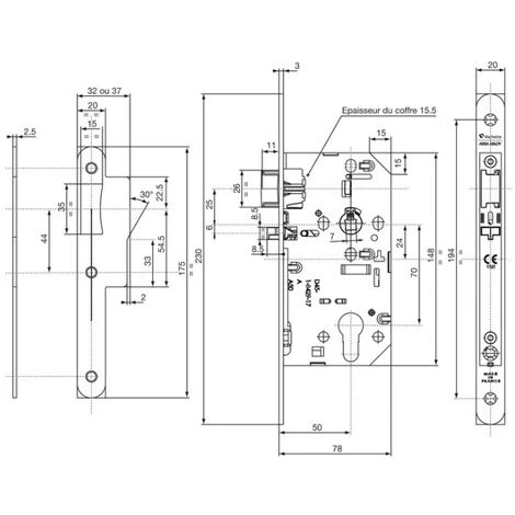 Pour conserver sa certification d’ urgence, les serrures doivent être impérativement installées avec leurs gâches et des ensembles homologuées(Béquille, poignées ….).
