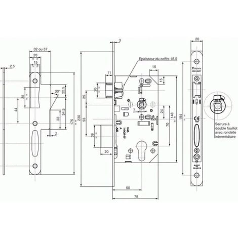 Pêne 1/2 tour (réversible) avec équerre + pêne dormant.