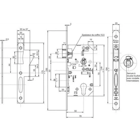 Contre pêne de sécurité (bloque le 1/2 tour une fois la porte fermée, mais n’a aucune action sur le fouillot).