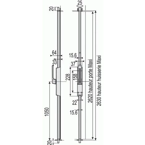 Pour menuiserie bois, aluminium et PVC. Pour porte de hauteur 2700 mm maximum. Joint antibruit. Entraxe et points de fixation du boitier central compatible avec l’ancienne série 720. Guide des pênes haut et bas en métal. Pêne haut en acier avec fusible en polyamide intégré. Pêne bas en acier.