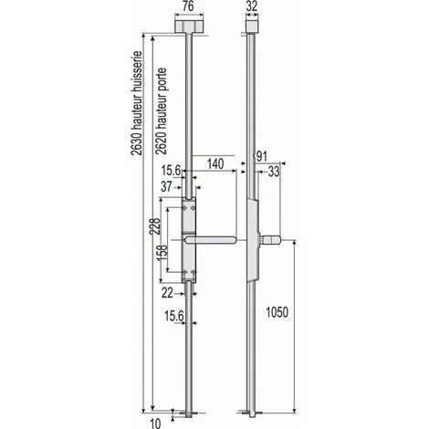 Produit handicapCrémones de porte pompier 740Crémone pompier type ST 742 coupe-feu pare-flamme à poignée rotative sans tringle Crémone réversible droite/gauche.