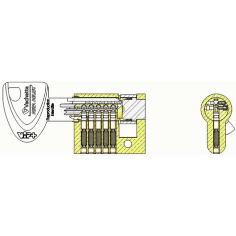 Profil européen possédant 14 à 23 goupilles sur 4 rangées. Protection anticrochetage et antiperçage. Clés brevetées en maillechort. Sur demande fonction clé de secours et possibilité de passe-partout. Mise sur organigramme possible : 32 000 000 variures.