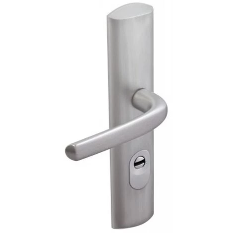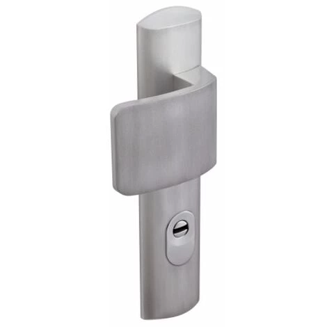 Ensemble blindé de haute sûreté pour serrures à encastrer à cylindre profilé de sûreté. Protection niveau 1. Réversible. Protecteur de cylindre breveté autoréglable de 5 mm, permettant le montage sur les épaisseurs de portes de 38 à 52 mm. 3 bornes de fixation Ø 12 mm. Contreplaques, béquille et poignée de tirage en aluminium.