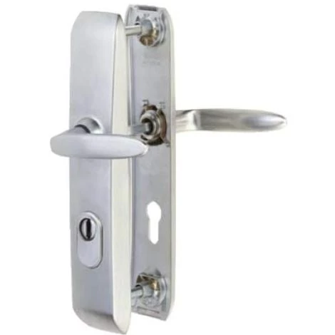 Ensembles palières de sécurité équipés de béquilles doubles ou béquille et poignée de tirage. Pour serrure axe à 50 mm minimum, entraxe 70 mm. Épaisseur porte 40 mm, sur demande kits de fixation pour épaisseurs 45 et 50 mm.Fixation invisible. Plaques de 250 x 55 mm. Saillie de la béquille 54 mm et saillie palière 56 mm.