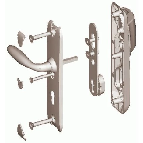 Ensembles paliĂšres de sĂ©curitĂ© Ă©quipĂ©s de bĂ©quilles doubles ou bĂ©quille et poignĂ©e de tirage. Pour serrure axe Ă 50 mm minimum, entraxe 70 mm. Ăpaisseur porte 40 mm, sur demande kits de fixation pour Ă©paisseurs 45 et 50 mm.Fixation invisible. Plaques de 250 x 55 mm. Saillie de la bĂ©quille 54 mm et saillie paliĂšre 56 mm.