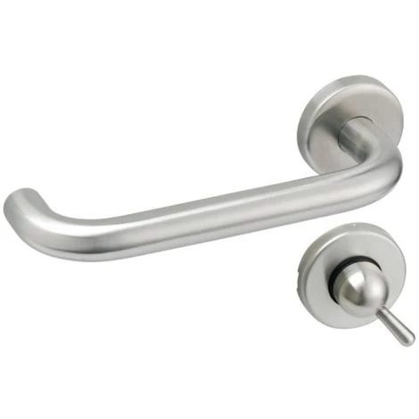 Diamètre rosace : 52 mm. Extrait du texte de loi (article 10, II, 2e de l’arrêté du 1er août 2006) : « L’extrémité des poignées de porte doit être située à plus de 0,40 m d’un angle rentrant de parois ou de tout autre obstacle à l’approche d’un fauteuil roulant. »