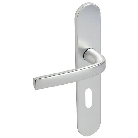 Poignées De Porte Budget Avec Plaque En Argent, Entraxe 165 Mm, Bec De Canne Vachette