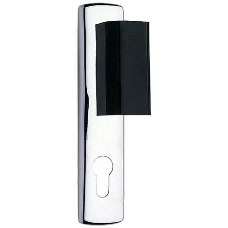 Ensemble Riv Angers en zamak chromé brillant. Entraxe EA 70 mm, entraxe de fixation 165 mm. Fourni avec vis et tige carrée de 7 mm. Plaque de 184 x 35 mm. Saillie de la béquille : 47 mm. Porte palière droite, trou de clé I, Porte palière droite, trou de clé I