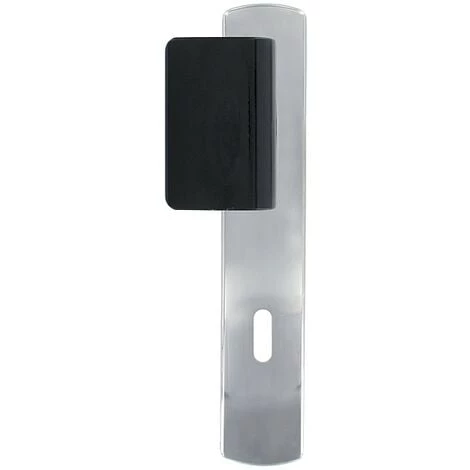 Ensemble Riv Bloc en zamak chromé, entraxe EA 70 mm. Entraxe de fixation 195 mm. Fourni avec vis et tige carrée de 7 mm. Plaque de 220 x 40 mm. Saillie de la béquille 60 mm. Porte palière, réversible, trou de clé L, Trou de clé L