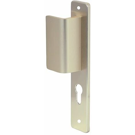 Plaque seule porte palière. Entraxe de fixation 195 mm. Plaque de 220 x 42 mm. Entraxe EA 70 mm. Trou de clé I, côté vis, champagne, Trou de clé I, côté vis, champagne