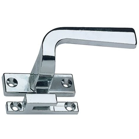 Poignée pour fenêtre basculante en zamak chromée, entraxe des trous en 50 mm. Poignée droite fournie avec gâche, Poignée droite fournie avec gâche