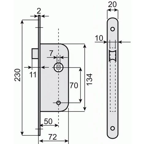 Serrures à larder D 10 Serrure à larder pêne demi-tour – Têtière bouts ronds – D12