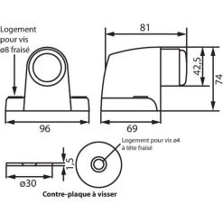 Finition vernie. Pêne dormant 30 mm. Canon 17 mm. 2 clés.
