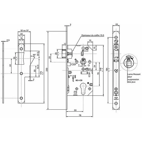 • Le pêne 1/2 tour ne peut pas être condamné par le cylindre.