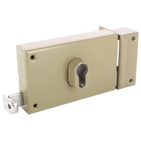 Serrures à cylindre européen série standingSerrure en applique horizontale à tirage – Pêne dormant et demi-tour – A cylindre européen – 7415 Coffre de 141 x 87 mm.
